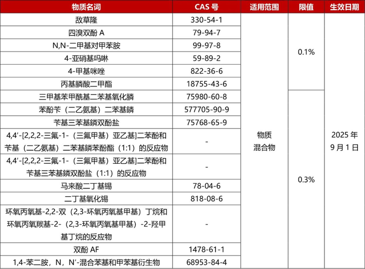 2025年8月11日,歐盟在其官方公報(bào)上發(fā)布(EU) 2025/1731法規(guī),擴(kuò)大了REACH法規(guī)附錄XVII第28、29和30條款中第1B類CMR(致癌,致突變或生殖毒性)物質(zhì)清單。